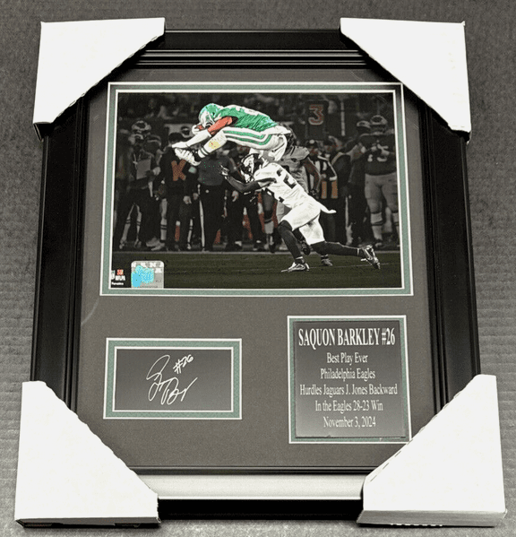 Saquon Barkley Eagles Hurdle LASER ENGRAVED AUTOGRAPHED Facsimile Framed 8x10 Photo